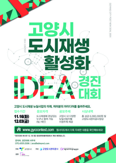 외부공지 경진대회 「고양시 도시재생 활성화 아이디어 경진대회」 홍보 안내 2021.11.16 조회수 5,860 학생처 share facebook twitter kakaotalk 카카오톡 앱이설치된 모바일 기기에서만공유 가능합니다. https://www.syu.ac.kr/?p=110477 share 복사 「고양시 도시재생 활성화 아이디어 경진대회」 홍보 안내입니다. 첨부된 파일을 참조하여 주시길 바랍니다. 포스터-시안-scaled.jpg (1.2 MB) facebook twitter kakaotalk 카카오톡 앱이설치된 모바일 기기에서만공유 가능합니다. 이전글 공모전「홍주문화관광재단 CI디자인 공모전」 개최 홍보 안내 다음글 행사「2022 식품외식산업 전망대회」홍보 안내 목록