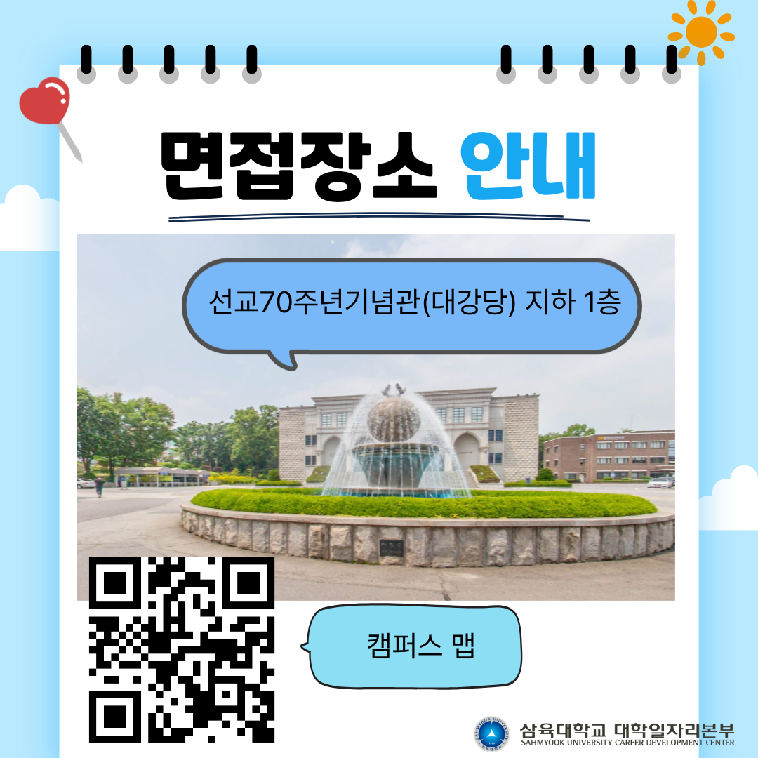 ○ 면접장소 : 삼육대학교 70주년 기념관(대강당) 지하 1층 학생창업보육센터 (서울 노원구 화랑로 815)