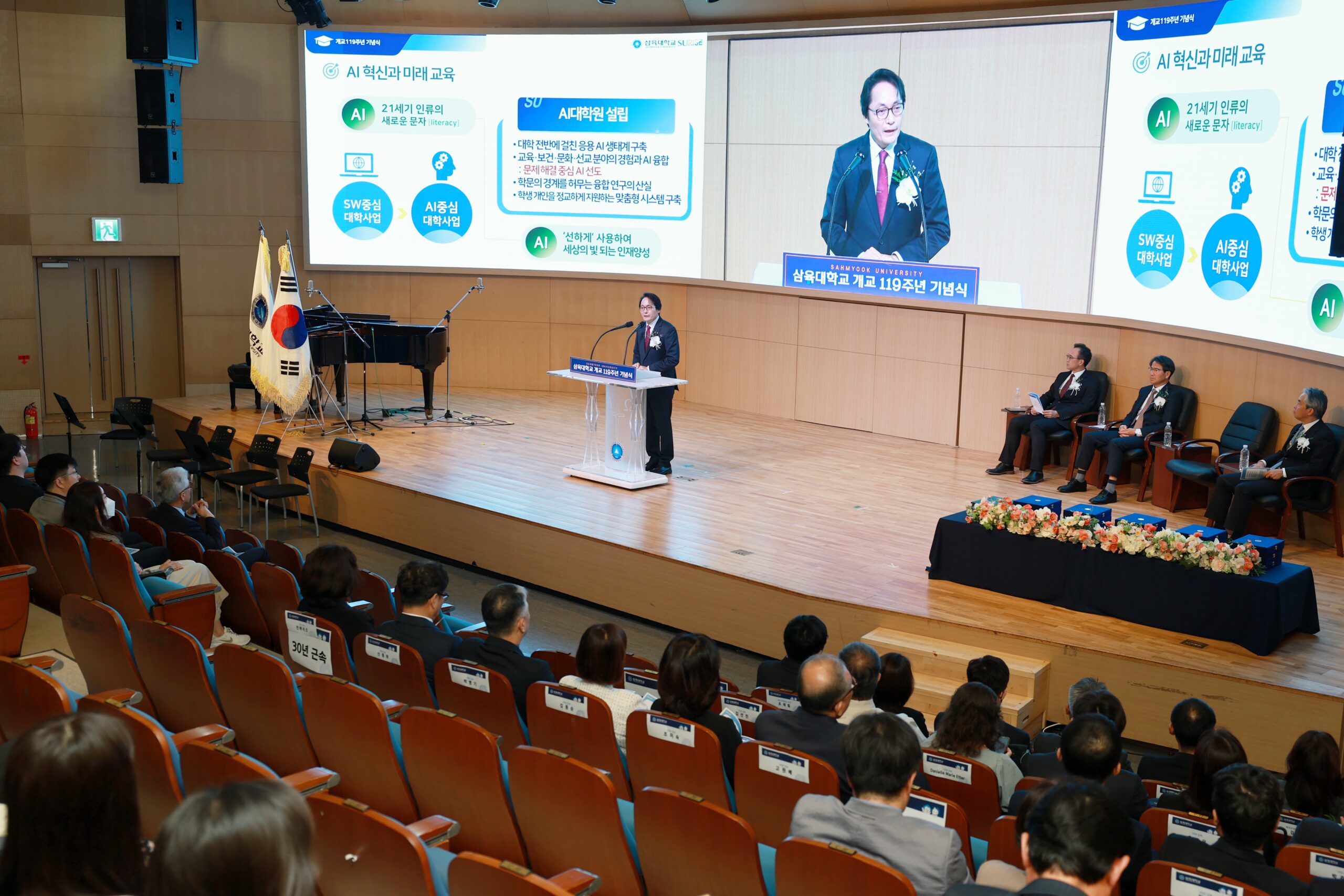 오늘 우리는 삼육대학교 개교 119주년을 맞이하는 특별한 자리에 모였습니다. 무엇보다도 지난 119년 동안 우리 대학을 눈동자처럼 지켜주시고 인도해 주신 ‘에벤에셀’의 하나님께 감사와 찬양을 드립니다. 또한 치열한 경쟁과 여러 도전 속에서도 각자의 자리에서 충성스럽게 헌신해 주신 교수님, 직원 여러분, 그리고 학생 여러분께 깊이 감사드립니다.