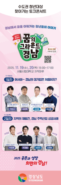 외부공지 [경상남도]꿈의 그라운드 경남, ‘수도권 청년 대상 찾아가는 토크콘서트’ 홍보 안내 2025.11.12 조회수 18 취업지원팀 share facebook twitter kakaotalk 카카오톡 앱이설치된 모바일 기기에서만공유 가능합니다. https://www.syu.ac.kr/mdh8 share 복사 facebook twitter kakaotalk 카카오톡 앱이설치된 모바일 기기에서만공유 가능합니다. 이전글 글이 없습니다. 다음글 [한국고용정보원]2025년 온통청년 이용자 만족도 조사 안내 목록