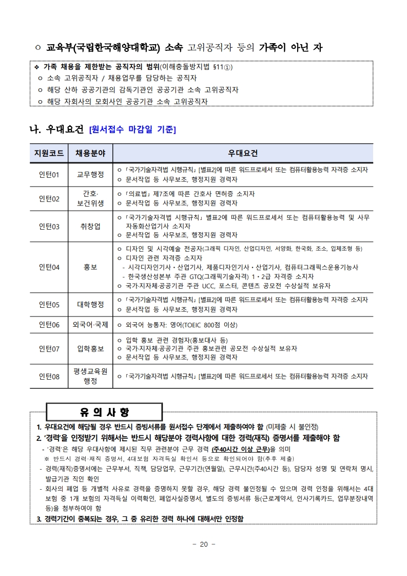 취업·창업공지 교육부(국립한국해양대학교) 청년인턴 채용안내 2025.03.05 조회수 899 취업지원팀 share facebook twitter kakaotalk 카카오톡 앱이설치된 모바일 기기에서만공유 가능합니다. https://www.syu.ac.kr/cfke share 복사 교육부국립한국해양대학교-청년인턴-채용안내.pdf (129.2 KB) 붙임1교육부국립한국해양대학교-청년인턴-채용-공고.hwp (653.5 KB) 붙임2응시원서-접수-방법코러스-온라인-등록방법.hwp (947.0 KB) facebook twitter kakaotalk 카카오톡 앱이설치된 모바일 기기에서만공유 가능합니다. 이전글 [한국장애인개발원] 장애청년 채용 취업 정보 안내 다음글 2025년 영주시 데이터 활용 아이디어 공모전 안내 목록