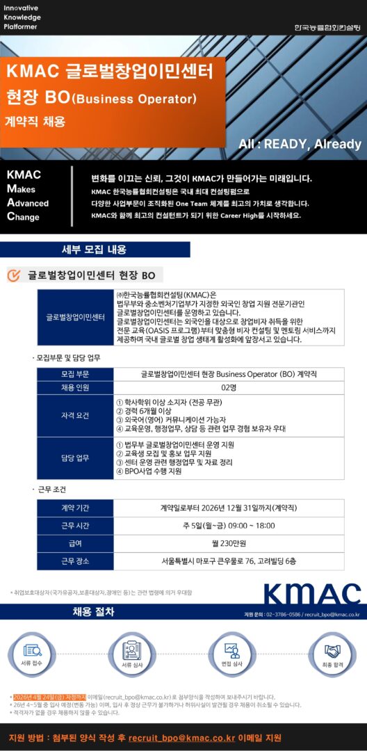 – 이메일 제출 recruit_bpo@kmac.co.kr