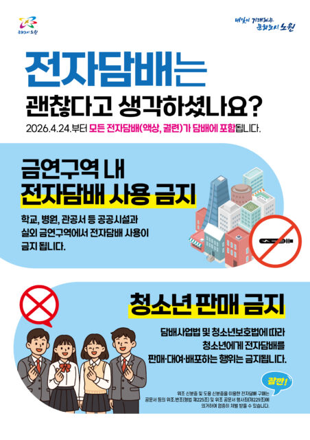 외부공지 [노원구 생활보건과] 담배사업법 개정 홍보 2026.04.23 조회수 39 금연금주클리닉 share facebook twitter kakaotalk 카카오톡 앱이설치된 모바일 기기에서만공유 가능합니다. https://www.syu.ac.kr/8fl8 share 복사 facebook twitter kakaotalk 카카오톡 앱이설치된 모바일 기기에서만공유 가능합니다. 이전글 글이 없습니다. 다음글 [문래청소년센터] [청년지원사업] 대학생 환경강사 양성가 과정 모집 목록