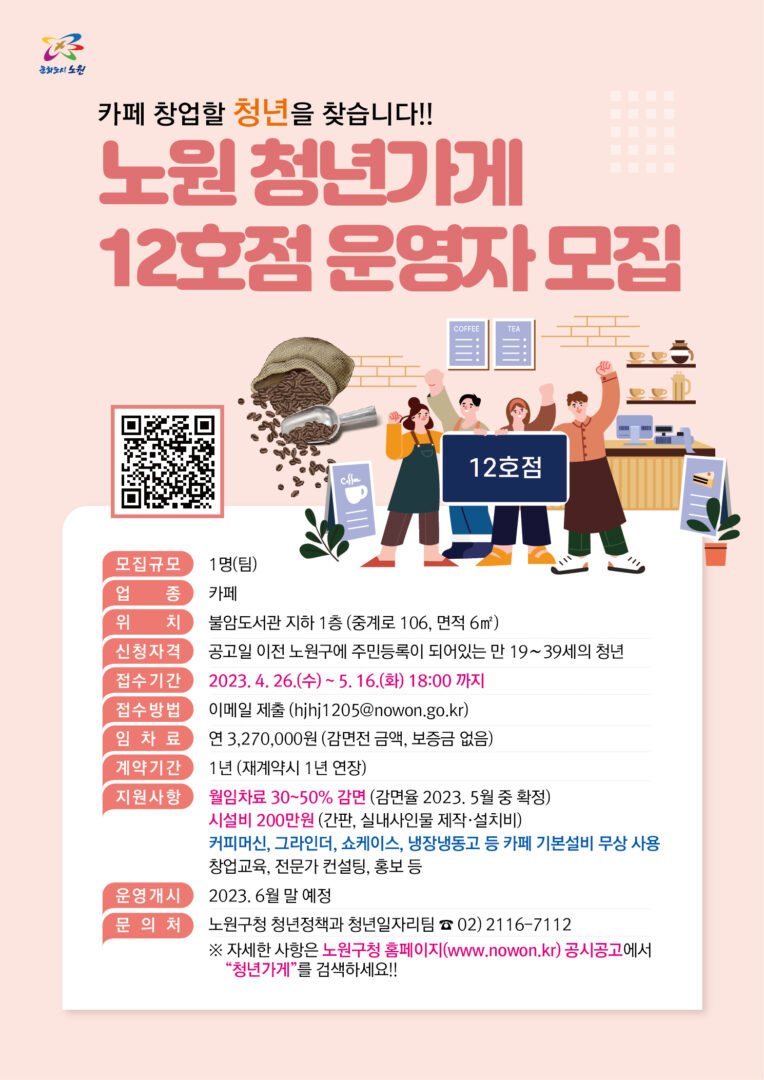 ※ 자세한 사항은 노원구청 홈페이지 고시공고에서 “청년가게”를 검색하세요!!