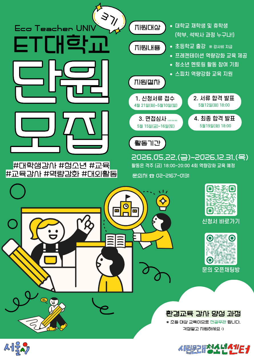 ET대학교 모집 포스터) ET대학교 모집 포스터) 2026.04.22 조회수 0 취업지원팀 share facebook twitter kakaotalk 카카오톡 앱이설치된 모바일 기기에서만공유 가능합니다. https://www.syu.ac.kr/?p=244335 share 복사 facebook twitter kakaotalk 카카오톡 앱이설치된 모바일 기기에서만공유 가능합니다. 이전글 글이 없습니다. 다음글 글이 없습니다. 목록