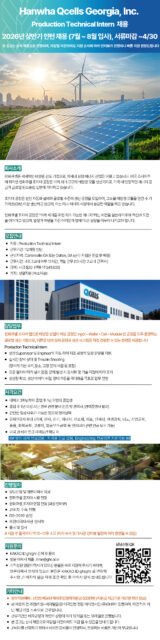 Hanwha_Qcells_Georgia_Inc.ProductionTechnical_Intern_2026년 상반기 인턴 채용 (7월~8월 입사 서류마감 ~0430) Hanwha_Qcells_Georgia_Inc.ProductionTechnical_Intern_2026년 상반기 인턴 채용 (7월~8월 입사 서류마감 ~0430) 2026.04.13 조회수 0 취업지원팀 share facebook twitter kakaotalk 카카오톡 앱이설치된 모바일 기기에서만공유 가능합니다. https://www.syu.ac.kr/?p=243343 share 복사 facebook twitter kakaotalk 카카오톡 앱이설치된 모바일 기기에서만공유 가능합니다. 이전글 글이 없습니다. 다음글 글이 없습니다. 목록