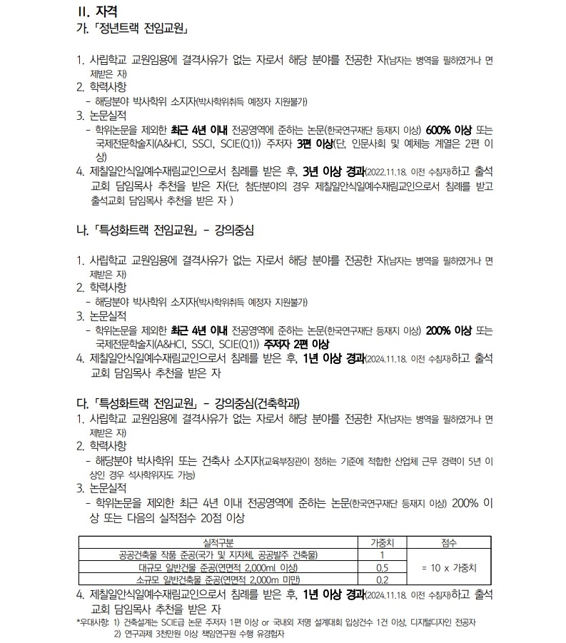 채용공고 삼육대학교 2026학년도 1학기 교수초빙 안내 2025.11.18 조회수 1,553 교수지원팀 share facebook twitter kakaotalk 카카오톡 앱이설치된 모바일 기기에서만공유 가능합니다. https://www.syu.ac.kr/mnbm share 복사 00-2026학년도-1학기-공고문전체.pdf (107.9 KB) 평가표.pdf (68.3 KB) 기준표.pdf (62.8 KB) facebook twitter kakaotalk 카카오톡 앱이설치된 모바일 기기에서만공유 가능합니다. 이전글 삼육대학교 직원(계약직) 채용 (2026.1.1.부)재공고_마감 다음글 사회복지학과 조교 채용공고 목록