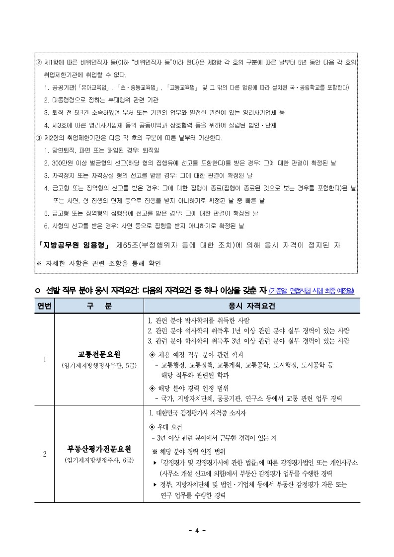 취업·창업공지 채용 [서울시] 일반임기제 공무원(감정평가사) 채용 안내 2024.10.23 조회수 5,109 취업지원팀 share facebook twitter kakaotalk 카카오톡 앱이설치된 모바일 기기에서만공유 가능합니다. https://www.syu.ac.kr/?p=214581 share 복사 서울시-일반임기제-공무원감정평가사-채용-안내-2-1.pdf (254.3 KB) 공고문임기제.pdf (627.3 KB) 제출서류-서식.hwp (106.0 KB) facebook twitter kakaotalk 카카오톡 앱이설치된 모바일 기기에서만공유 가능합니다. 이전글 채용2024년 제4회 (재)여주세종문화관광재단 직원 채용공고 안내 다음글 채용우주항공청(국가위성운영센터) 일반임기제공무원 경력경쟁채용 안내 목록