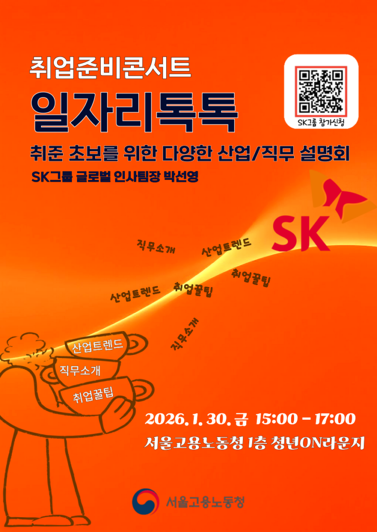 외부공지 [서울지방고용노동청]2026 서울고용노동청과 함께하는 취업준비콘서트_일자리톡톡[SK그룹] 홍보 안내 2026.01.23 조회수 14 취업지원팀 share facebook twitter kakaotalk 카카오톡 앱이설치된 모바일 기기에서만공유 가능합니다. https://www.syu.ac.kr/e1sx share 복사 facebook twitter kakaotalk 카카오톡 앱이설치된 모바일 기기에서만공유 가능합니다. 이전글 [한국해양대학교]2026년 제2회 대학회계계약직 채용 공고 안내 다음글 [(재)광명시청소년재단]2026년 광명시청소년진로진학지원센터 대학생 멘토단(wave) 모집 안내 목록