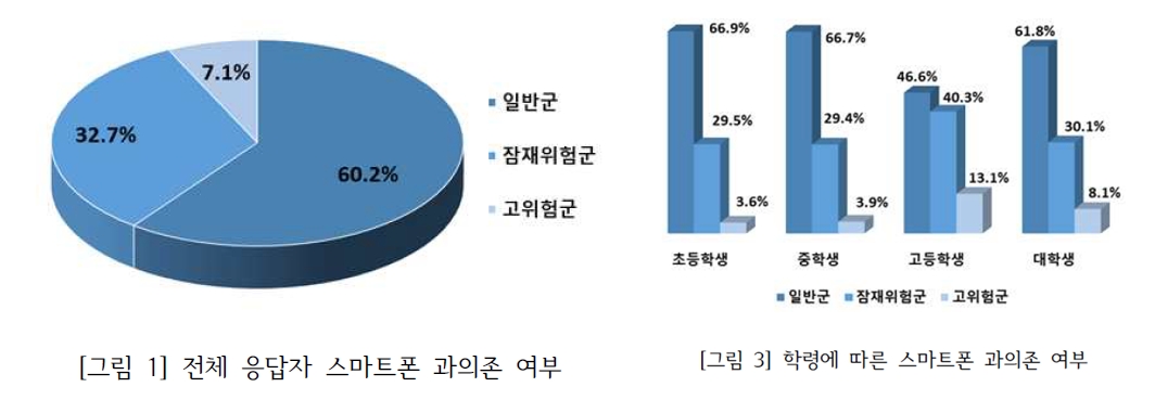 조사 결과, 서울시 청소년의 스마트폰 과의존 정도는 일반군 60.2%, 잠재위험군 32.7%, 고위험군 7.1%로 집계됐다. 전체의 약 40%가 과의존 위험 수준에 해당하는 셈이다.