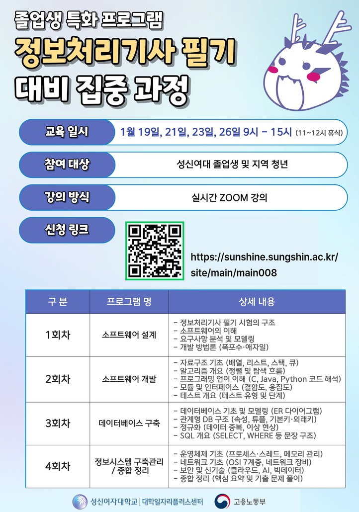 [성신여대] 졸업생 특화 프로그램 정보처리기사 필기 대비 집중 과정