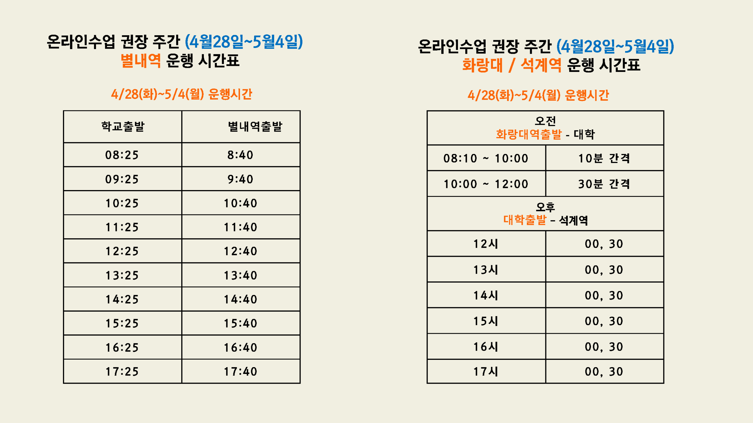 학사공지 [스쿨버스] 온라인 수업 권장 주간 셔틀버스 시간 변경 안내 2026.04.28 조회수 302 학생처 share facebook twitter kakaotalk 카카오톡 앱이설치된 모바일 기기에서만공유 가능합니다. https://www.syu.ac.kr/dgqp share 복사 facebook twitter kakaotalk 카카오톡 앱이설치된 모바일 기기에서만공유 가능합니다. 이전글 글이 없습니다. 다음글 학적[졸업] 2025학년도 후기(2026년 8월) 졸업대상자 예비졸업사정결과 확인 안내 목록