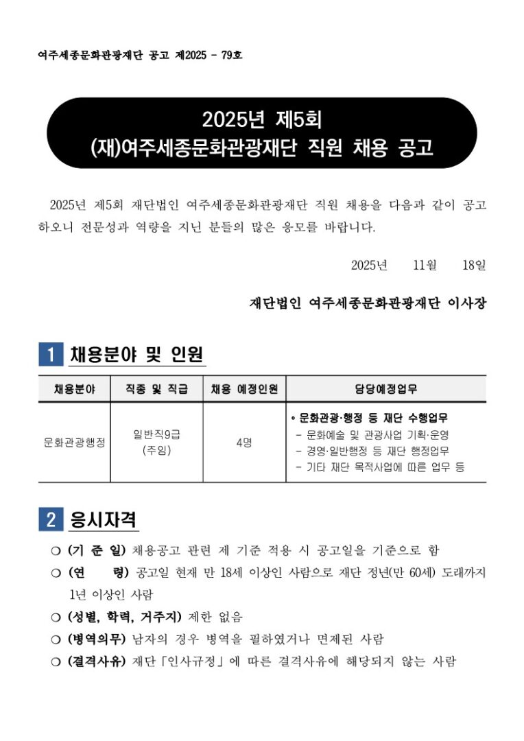 외부공지 [여주세종문화관광재단]2025년 제5회 (재)여주세종문화관광재단 직원 채용공고 홍보 안내 2025.11.19 조회수 23 취업지원팀 share facebook twitter kakaotalk 카카오톡 앱이설치된 모바일 기기에서만공유 가능합니다. https://www.syu.ac.kr/99dr share 복사 facebook twitter kakaotalk 카카오톡 앱이설치된 모바일 기기에서만공유 가능합니다. 이전글 글이 없습니다. 다음글 [마감임박!] 교육비 0원! 서울에서 배우는 “데이터분석/PM” 양성과정 모집중 (~11/23) 목록