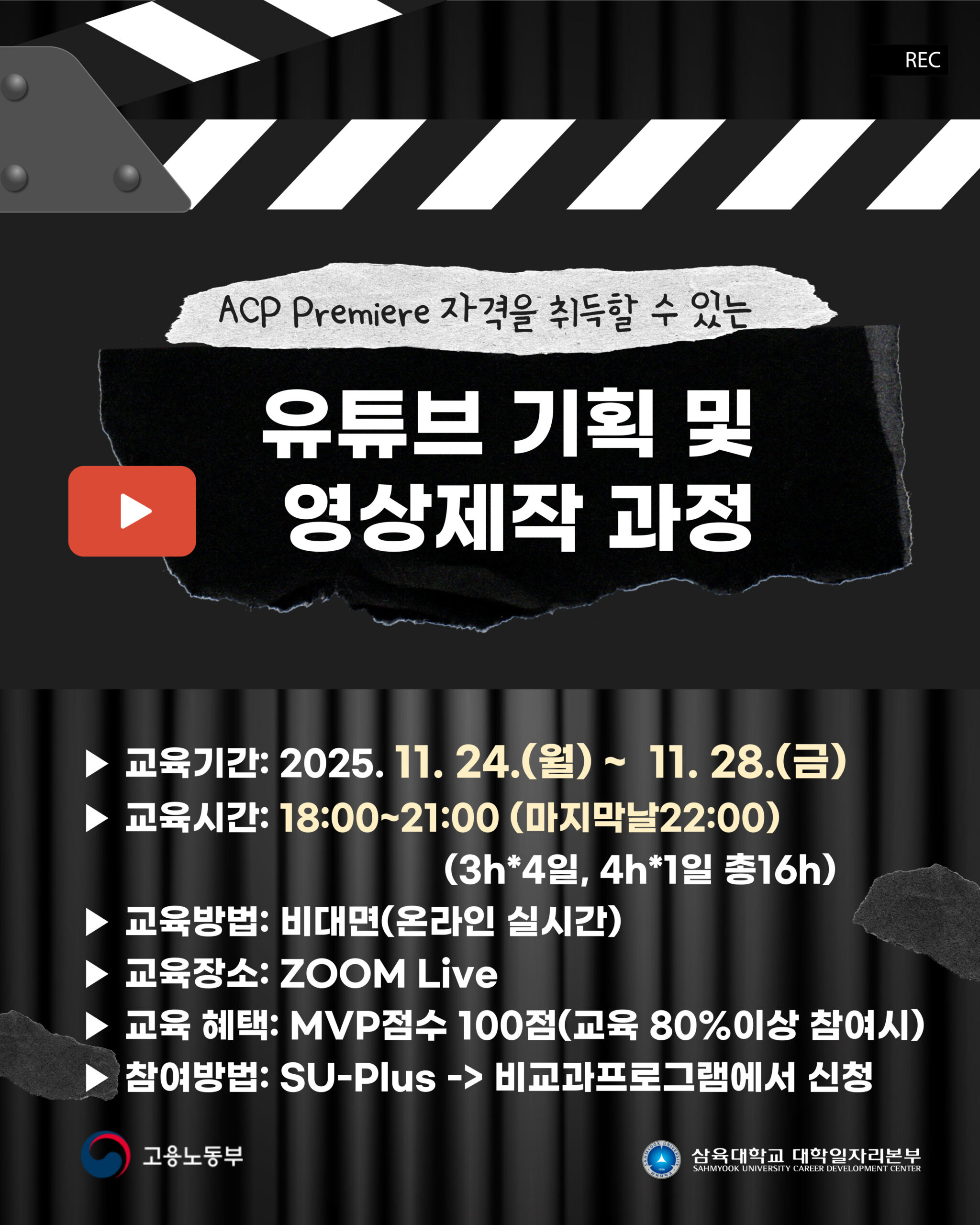 유튜브 기획 및 영상제작 과정(ACP Premiere 자격 취득 가능) OPEN!