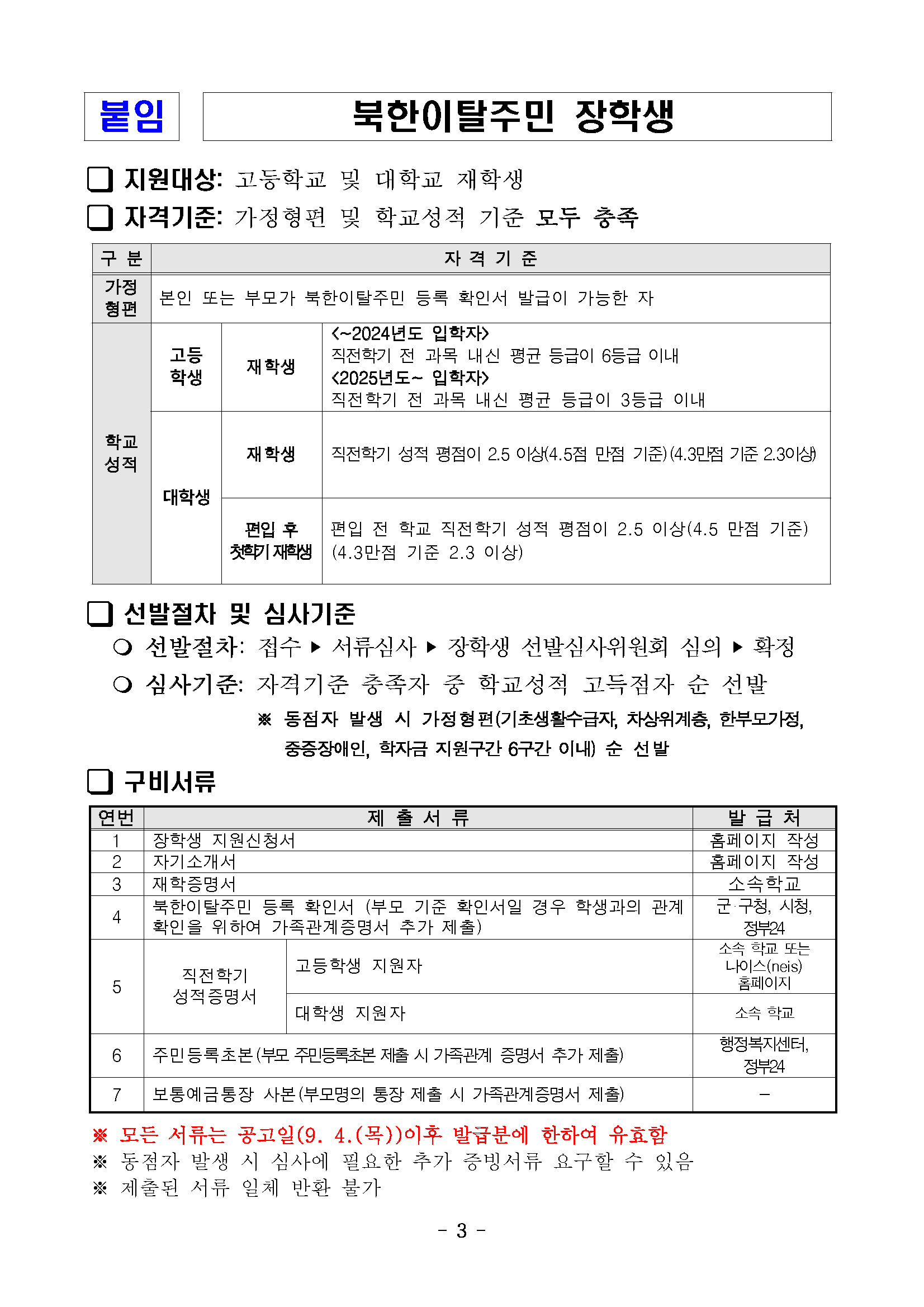 I 2025년도 하반기 북한이탈주민 장학생 선발 재공고(추가모집) I