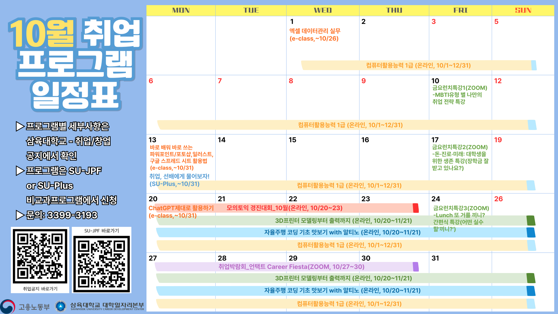 [일정표] 2025년 10월 진로 및 취업프로그램 한번에 보기