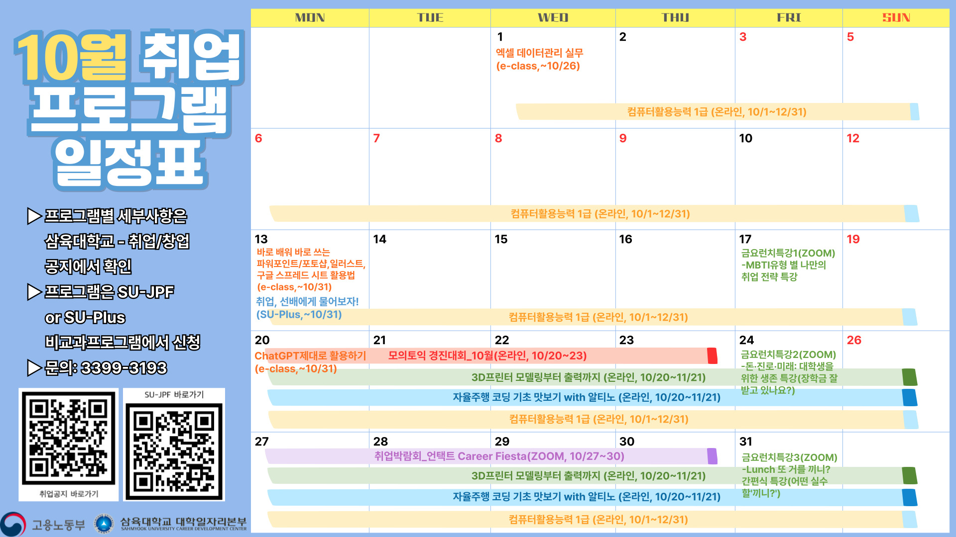 [일정표] 2025년 10월 진로 및 취업프로그램 한번에 보기