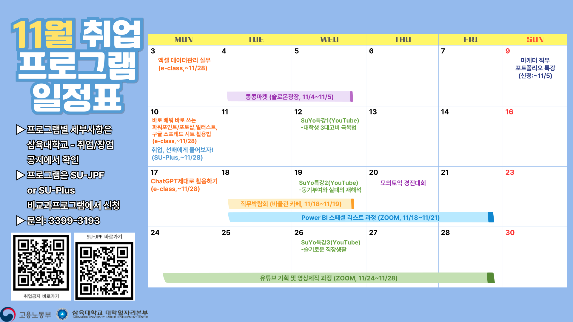 [일정표]2025년 11월 진로 및 취업프로그램 한번에 보기