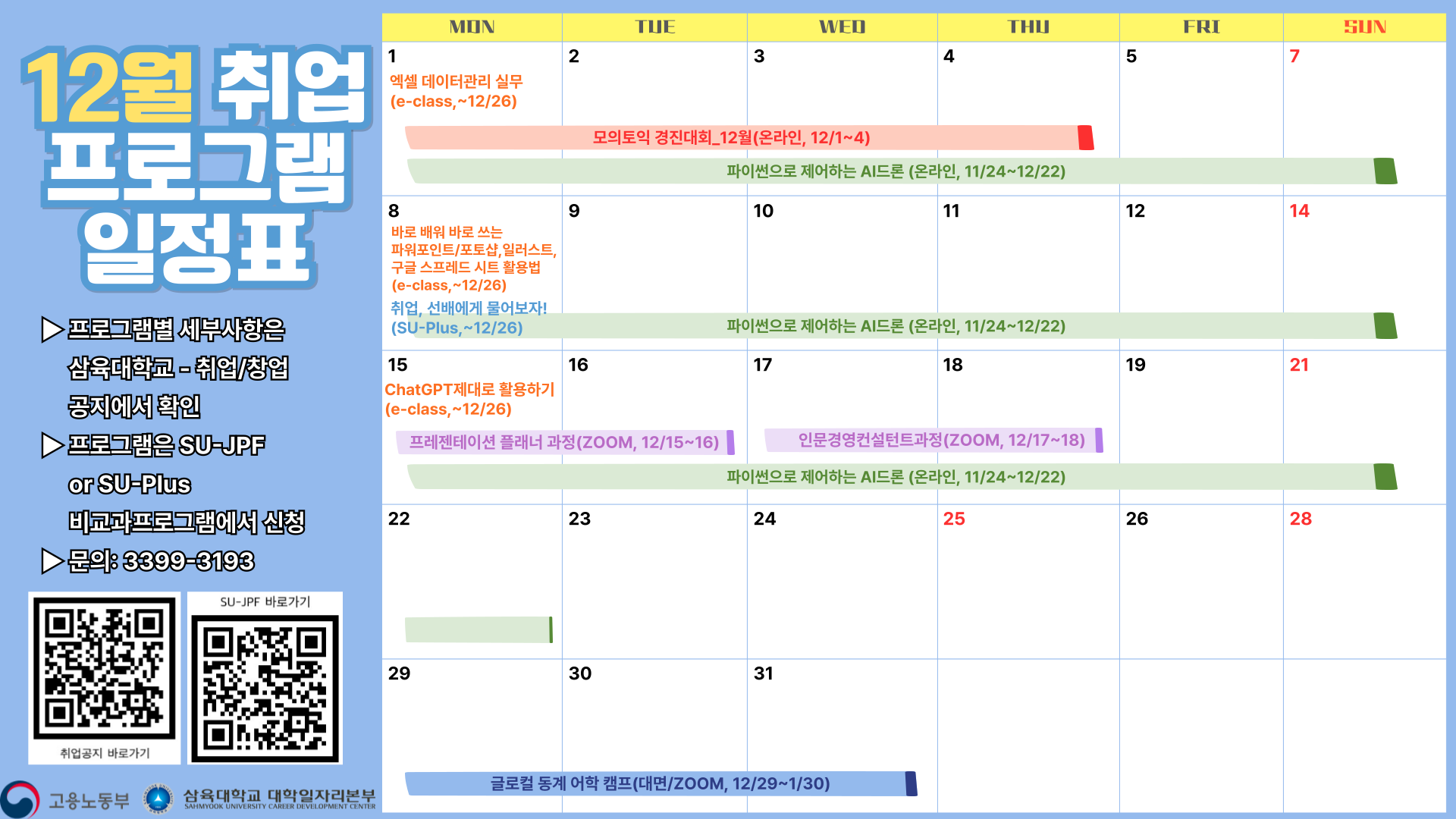 [일정표]2025년 12월 진로 및 취업프로그램 한번에 보기
