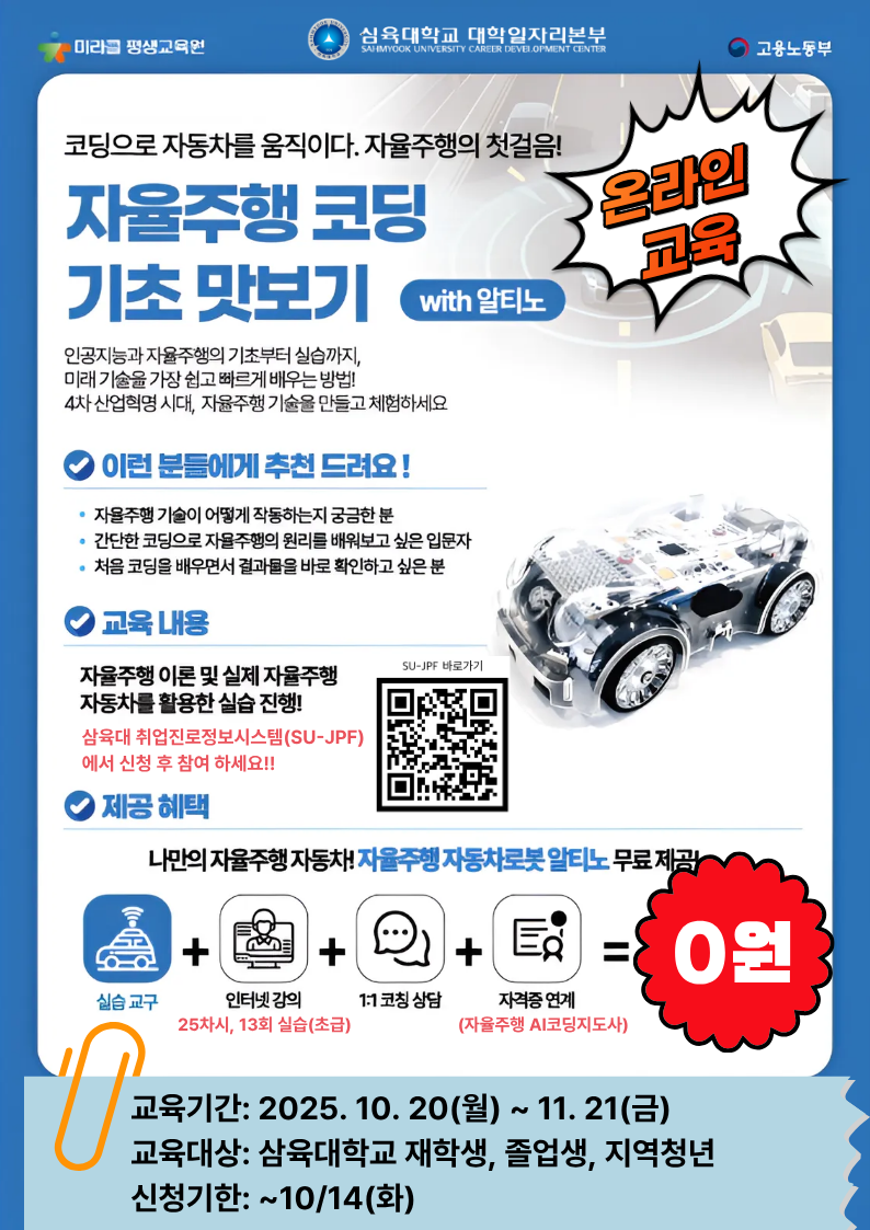 – 자율주행 이론 및 실제 자율주행 자동차를 활용한 실습 진행 - 교육방법: 비대면(온라인)