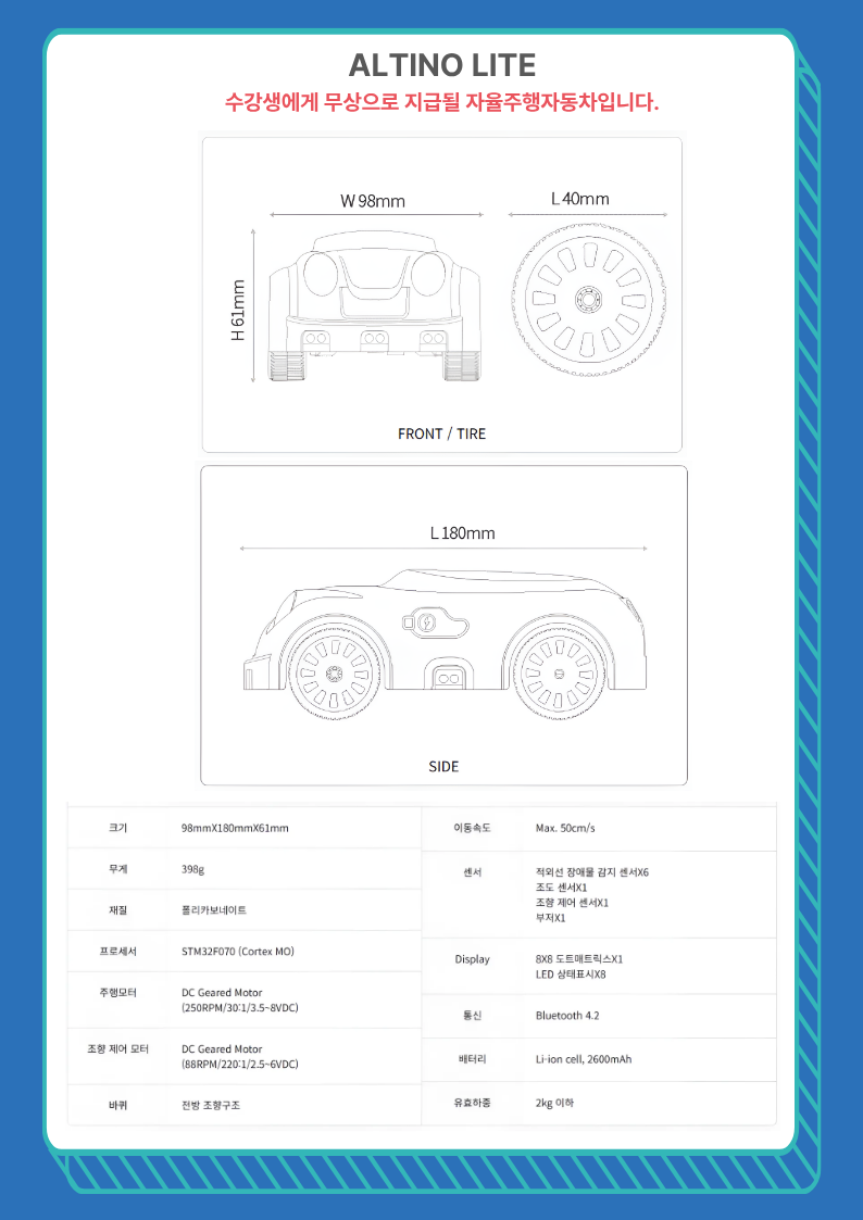 – 자율주행 자동차로봇 알티노 무료제공