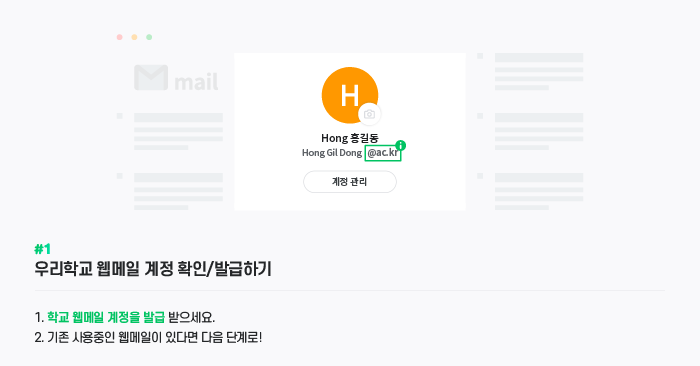 * 졸업 후에는 학교 메일 계정 생성이 불가하므로 반드시 재학 중 신청 바랍니다!!