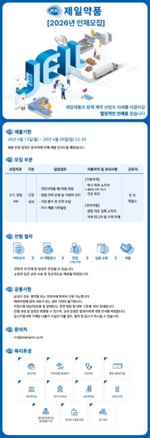 • [제일약품] 영업 수시채용 (전국)