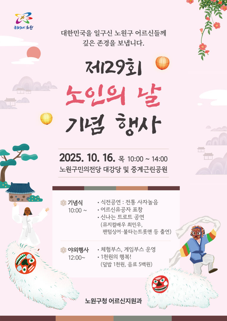 노원구청에서 제29회 노인의날 기념행사 자원봉사자 모집합니다.