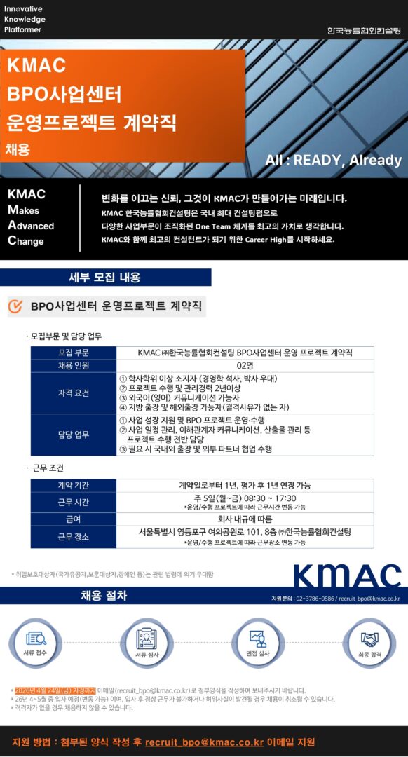 – 이메일 제출 recruit_bpo@kmac.co.kr