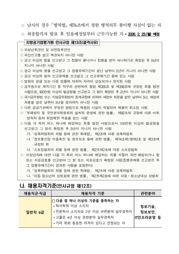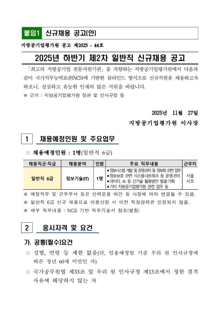 외부공지 [지방공기업평가원]지방공기업평가원 일반직(정보기술) 신규채용 안내 2025.11.28 조회수 3 취업지원팀 share facebook twitter kakaotalk 카카오톡 앱이설치된 모바일 기기에서만공유 가능합니다. https://www.syu.ac.kr/yaxz share 복사 붙임-2025년-하반기-제2차-일반직-신규채용-공고.pdf (392.8 KB) facebook twitter kakaotalk 카카오톡 앱이설치된 모바일 기기에서만공유 가능합니다. 이전글 [서울지방고용노동청]12월 서울고용노동청과 함께하는 취업준비콘서트_일자리톡톡 홍보 안내 다음글 [서울지방고용노동청서울북부지청]취업지원서비스 자료 제공 안내 및 홍보 협조 요청(11월 4주) 목록
