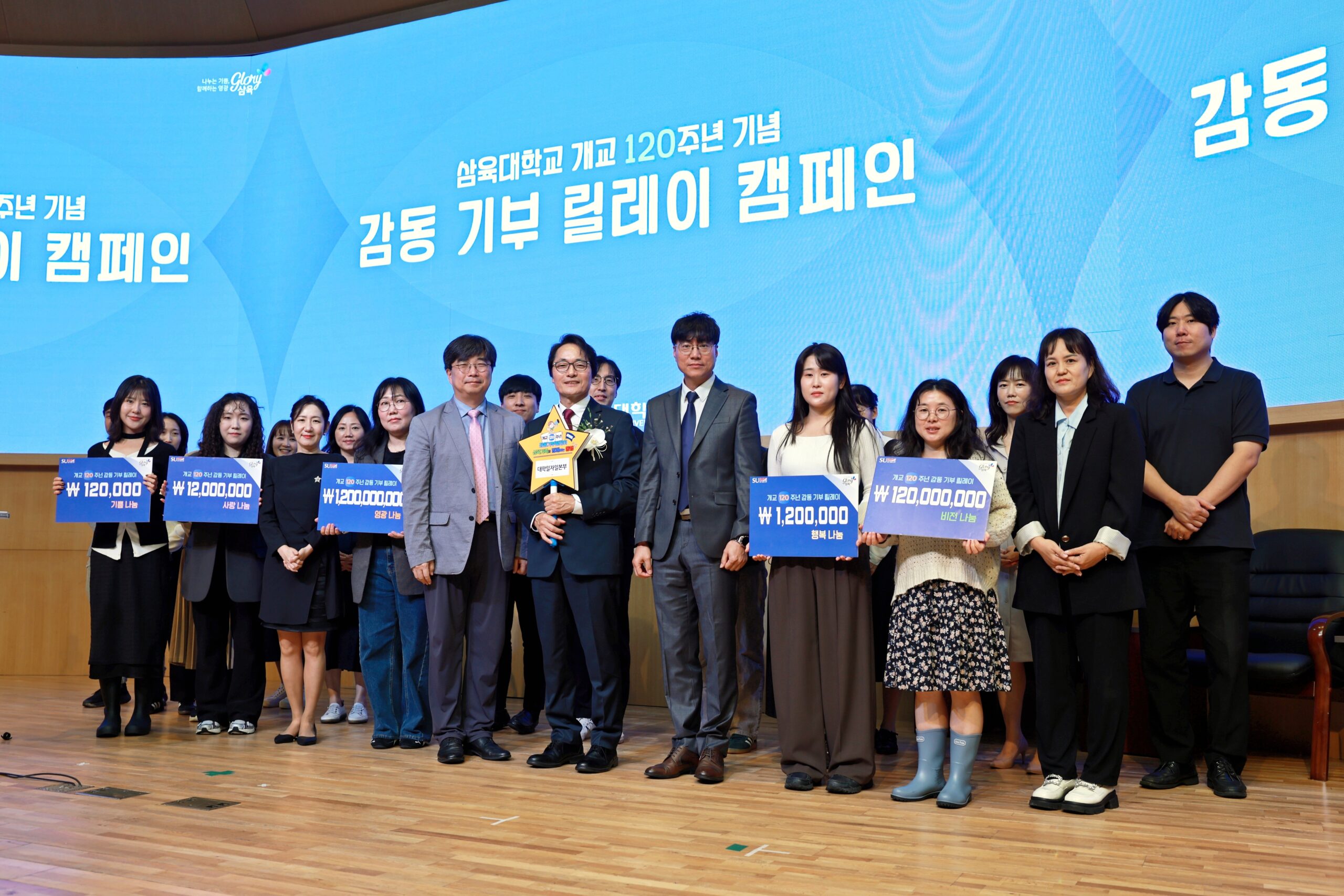 ‘감동 기부 릴레이 캠페인’은 삼육대가 개교 120주년을 맞아 추진 중인 ‘SU-RISE 프로젝트’(지하캠퍼스 구축) 실현을 위한 발전기금 모금 운동이다. 이미 외부 기부자를 중심으로 활발한 모금 활동을 전개하고 있으며, 교내 캠페인을 통해 구성원 모두가 함께 참여하는 공동체적 나눔 문화로 확산하고 있다. (관련기사▷120주년 ‘감동 기부 릴레이’, 교내로 확산한다)