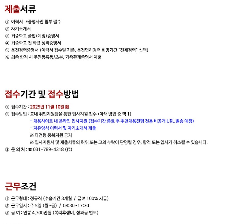 2. 입사지원서 제출 : 11/07(금) 오전까지