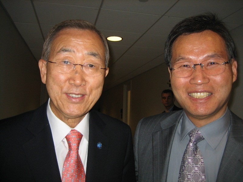 ▲ 남영한 회장(오른쪽)과 반기문 전 유엔 사무총장. 사진=남영한 회장 제공