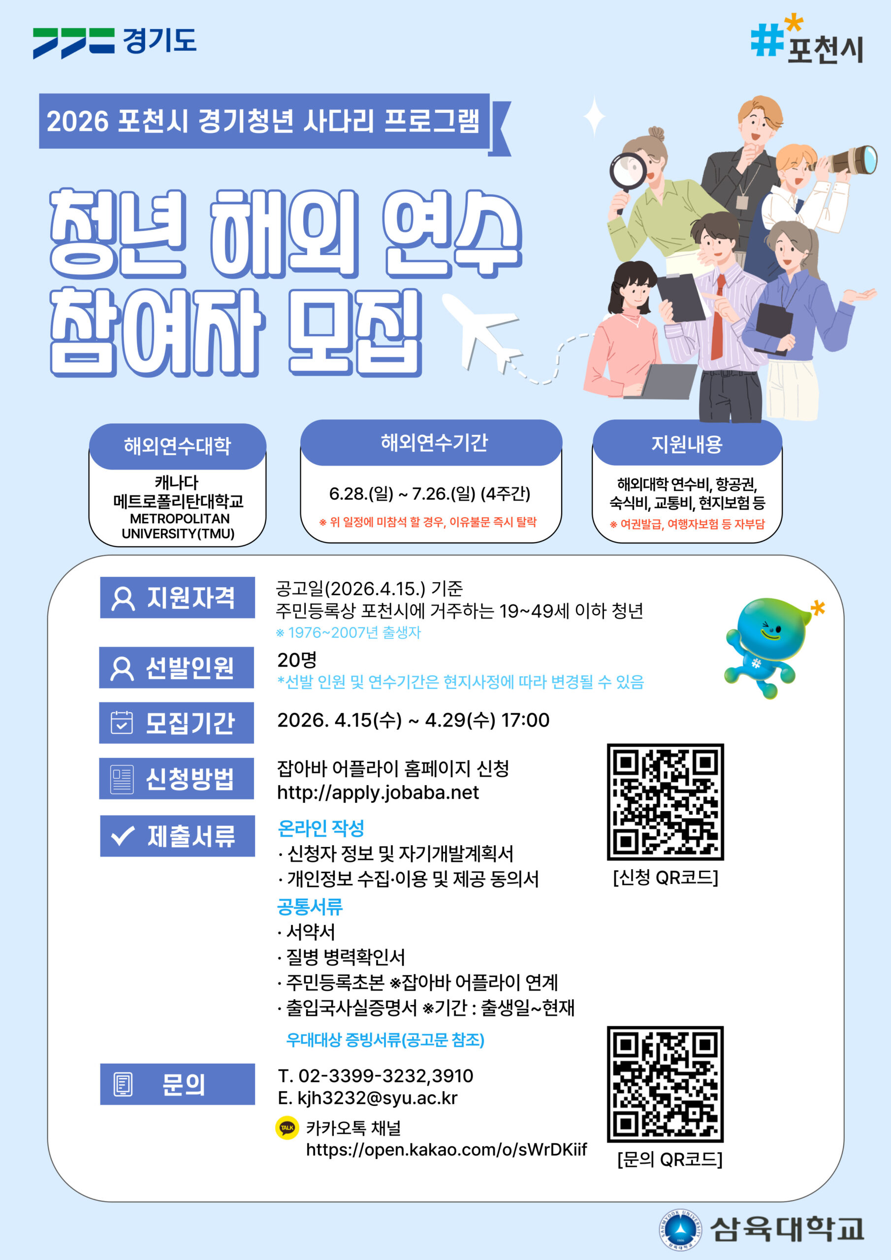자세한 내용은 삼육대 홈페이지, 포천시청 홈페이지, 카카오톡 채널 ‘2026 포천경기청년 사다리’에서 확인할 수 있다. (☏문의 02-3399-3233)