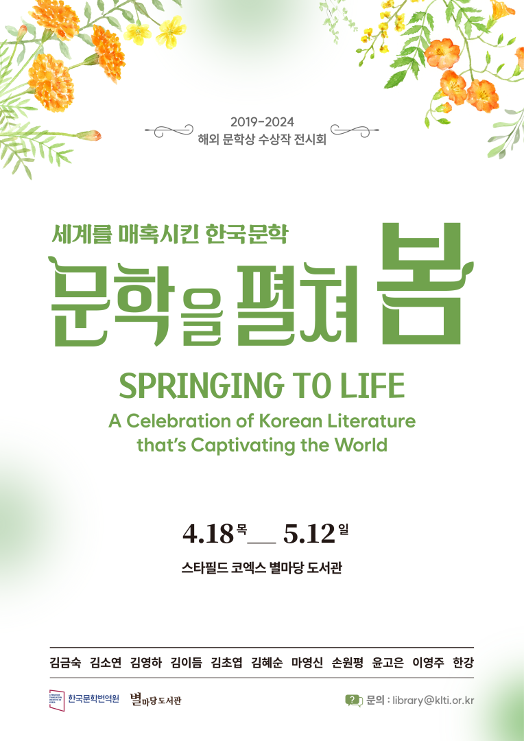 외부공지 행사 한국문학번역원 번역전문도서관-별마당도서관『문학을 펼쳐 봄: 세계를 매혹시킨 한국문학』전시회 안내 2024.04.19 조회수 2,401 학생처 share facebook twitter kakaotalk 카카오톡 앱이설치된 모바일 기기에서만공유 가능합니다. https://www.syu.ac.kr/?p=203558 share 복사 facebook twitter kakaotalk 카카오톡 앱이설치된 모바일 기기에서만공유 가능합니다. 이전글 행사「2024 청주 가드닝 페스티벌」안내 다음글 행사강남문화재단 제977회 목요예술무대 공연 안내 목록