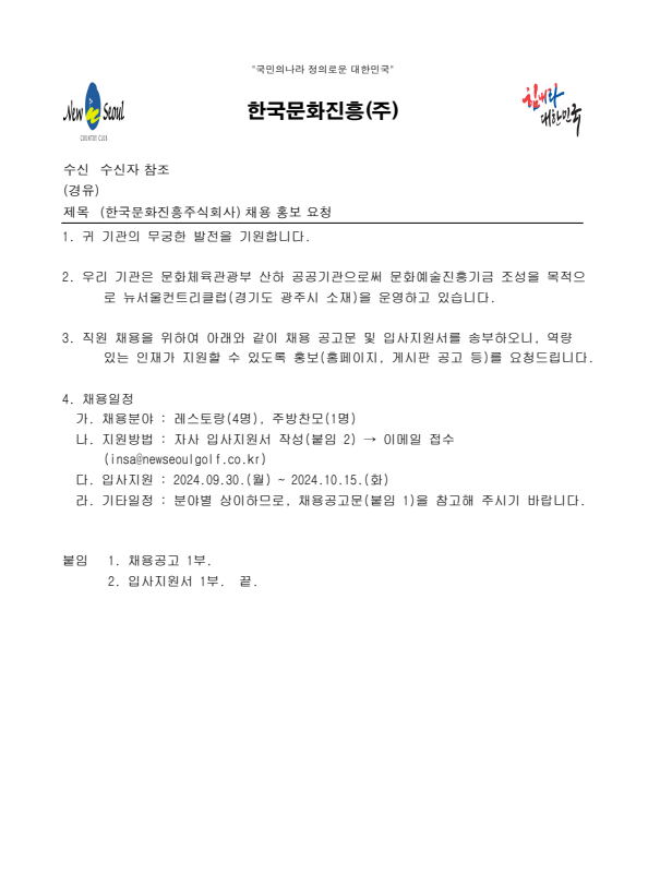 취업·창업공지 채용 한국문화진흥주식회사 채용 안내 2024.10.07 조회수 3,267 취업지원팀 share facebook twitter kakaotalk 카카오톡 앱이설치된 모바일 기기에서만공유 가능합니다. https://www.syu.ac.kr/?p=213572 share 복사 attach_입사지원서-2.hwp (180.5 KB) attach_한국문화진흥주-채용공고문.pdf (353.1 KB) 한국문화진흥주식회사-채용-안내.pdf (203.3 KB) facebook twitter kakaotalk 카카오톡 앱이설치된 모바일 기기에서만공유 가능합니다. 이전글 채용FNS 카터스빌 지점 직원 채용 공고 (H2B 비자 지원) 다음글 채용[문화체육관광부] 해외홍보콘텐츠과 공무직 근로자 채용 안내 목록