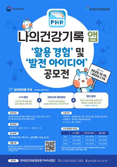 외부공지 [한국보건의료정보원]나의건강기록 앱 ‘활용 경험’ 및 ‘발전 아이디어’ 공모전 안내 및 홍보 안내 2025.12.23 조회수 50 취업지원팀 share facebook twitter kakaotalk 카카오톡 앱이설치된 모바일 기기에서만공유 가능합니다. https://www.syu.ac.kr/qd1i share 복사 붙임1-나의건강기록-앱-활용-경험-및-발전-아이디어공모전-홍보-포스터.pdf (439.4 KB) 붙임2-나의건강기록-앱-활용-경험-및-발전-아이디어공모전모집-공고문.hwp (91.0 KB) facebook twitter kakaotalk 카카오톡 앱이설치된 모바일 기기에서만공유 가능합니다. 이전글 [한성대학교][한성대학교 / 대학일자리플러스센터] 거점형 특화프로그램 홍보 안내 다음글 [여주시]2025년 제6회 여주시 지방임기제공무원 임용시험 재공고(3차) 안내 목록