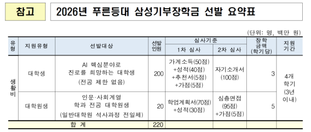 [한국장학재단-생활비성] 2026년 푸른등대 삼성기부장학금 신규장학생 신청 안내