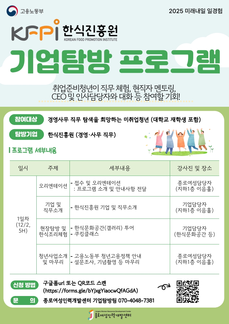 외부공지 [한식진흥원] 기업탐방 프로그램 홍보 2025.11.03 조회수 23 취업지원팀 share facebook twitter kakaotalk 카카오톡 앱이설치된 모바일 기기에서만공유 가능합니다. https://www.syu.ac.kr/kycs share 복사 facebook twitter kakaotalk 카카오톡 앱이설치된 모바일 기기에서만공유 가능합니다. 이전글 [한국폴리텍대학]2026학년도 국비무료 청년취업연계 하이테크과정 안내 다음글 대기업 경영지원 아웃소싱 전문기업(BPO) 채용정보 목록