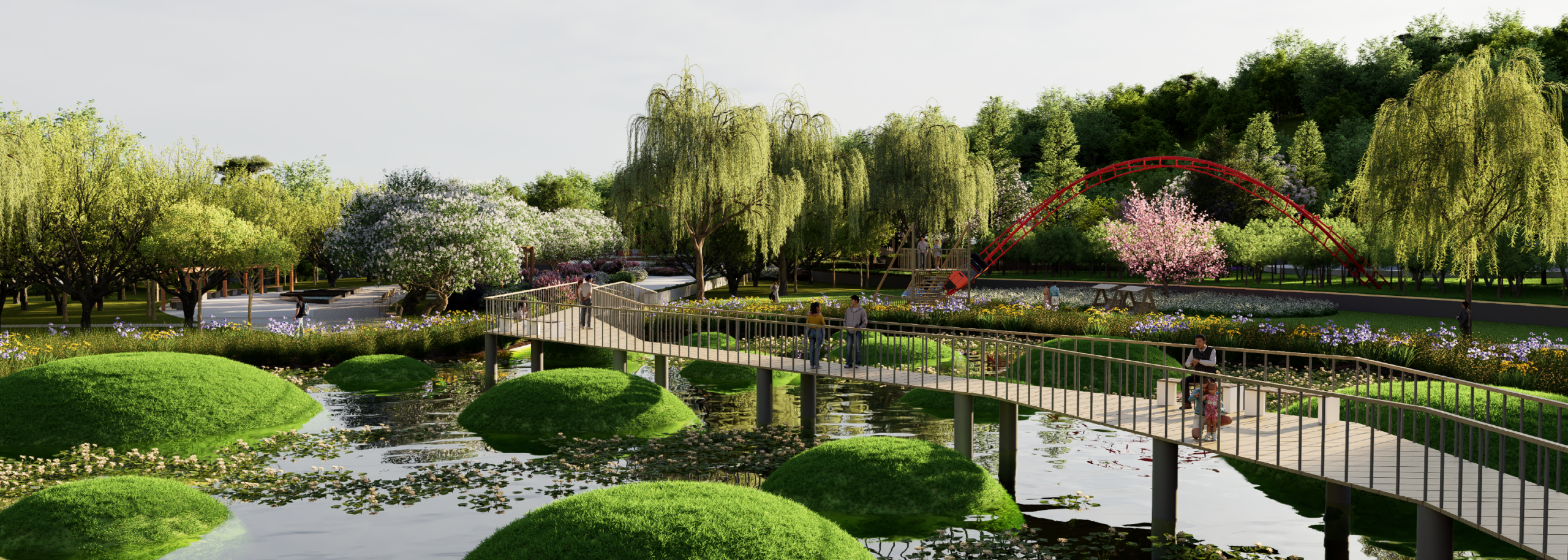 윤지원, 채누리, 현서진의 조경디자인 작품 ‘에코(ECHO)’는 오랜 시간 방치된 폐놀이공원 용마랜드를 기억과 생태가 공존하는 공원으로 재창조했다. 회전목마 등 과거의 기억을 담은 흔적(ECHO)과, 빗물 관리 및 자생 식생을 통한 자연의 순환(ECO)이 유기적으로 겹쳐지며 끊어졌던 도시와 자연을 다시 잇는다.
