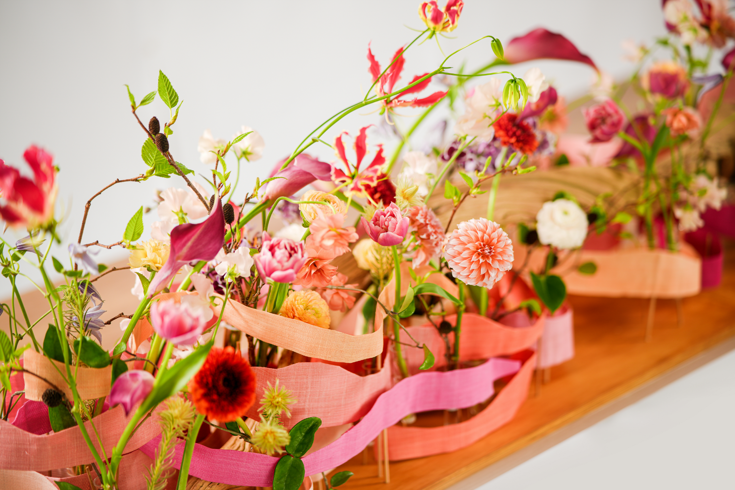 강태경의 원예디자인 작품 ‘셰어드 모먼트(Shared Moment)’는 자연과 인간의 관계를 하나의 장면으로 연출했다. 인간의 개입으로 잘려 나간 고목과 상대적으로 짧은 시간을 사는 절화를 모시천과 함께 배치했다. 서로 다른 시간과 성질을 지닌 요소를 한 공간에 부드럽게 연결해, 자연이 인간에 종속된 대상이 아닌 함께 살아가는 존재임을 은유적으로 보여준다.