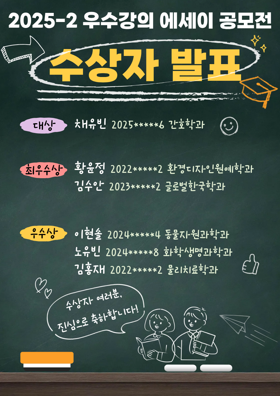 2025-2 우수강의 에세이 공모전 수상자 발표