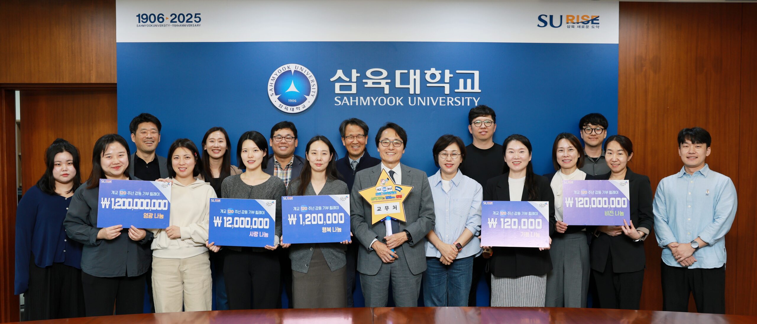 우리 대학이 개교 120주년을 맞아 추진 중인 ‘감동 기부 릴레이 캠페인’을 교내 구성원을 대상으로 확대 전개한다. 이번 캠페인은 우리 대학의 미래 비전인 ‘SU-RISE 프로젝트’를 실현하기 위한 발전기금 모금 운동의 일환이다.