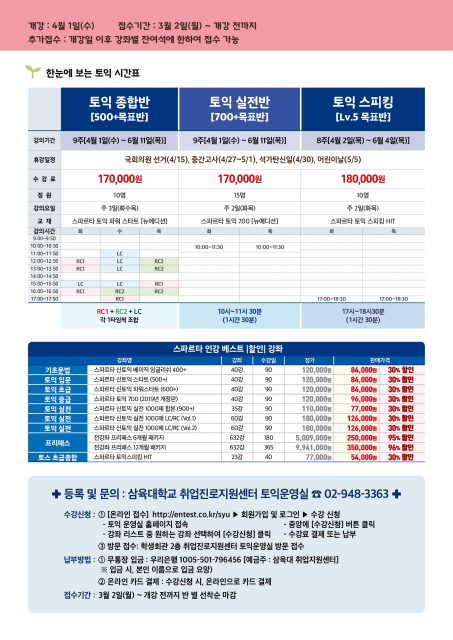 문의 > 취업진로지원센터 토익운영실 ☎ 02-948-3363