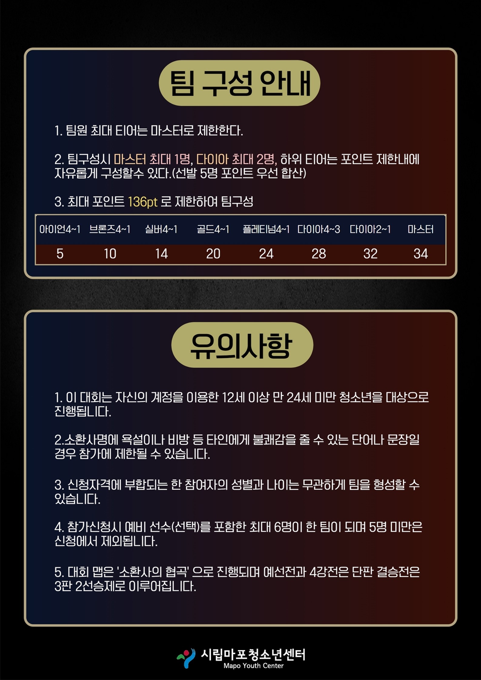 외부공지 행사 2022년 유스나루 e스포츠활동 윈터시즌3 [마포 오브 레전드] 참가자 모집 안내 2022.12.12 조회수 3,597 학생처 share facebook twitter kakaotalk 카카오톡 앱이설치된 모바일 기기에서만공유 가능합니다. https://www.syu.ac.kr/?p=133904 share 복사 2022년-유스나루-e스포츠활동-마포-오브-레전드-대회-규정_최종.pdf (54.7 KB) facebook twitter kakaotalk 카카오톡 앱이설치된 모바일 기기에서만공유 가능합니다. 이전글 행사2022학년도 2차 서울과학기술대학교 드론 어디까지 해봤니 캠프 프로그램 안내 다음글 행사2022년 유통인쇼 대한민국 온라인 유통 트렌드 전시회 안내 목록