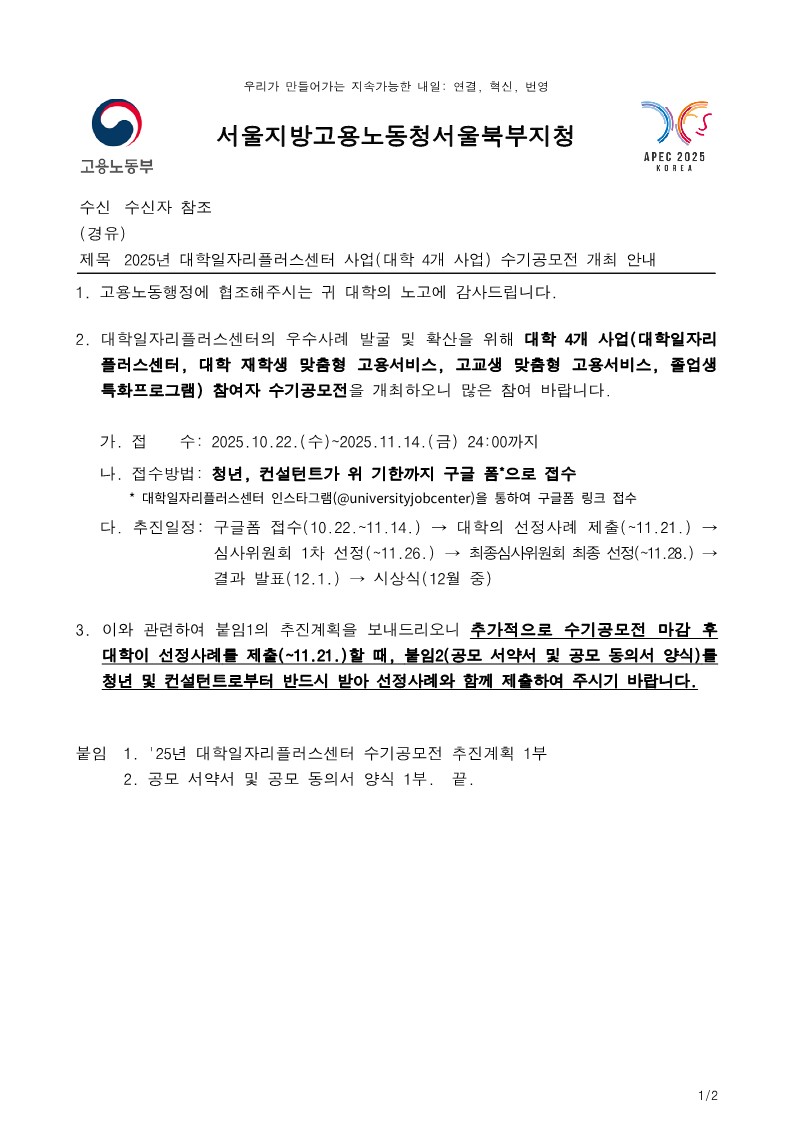 2025년 대학일자리플러스센터 수기공모전 개최 안내