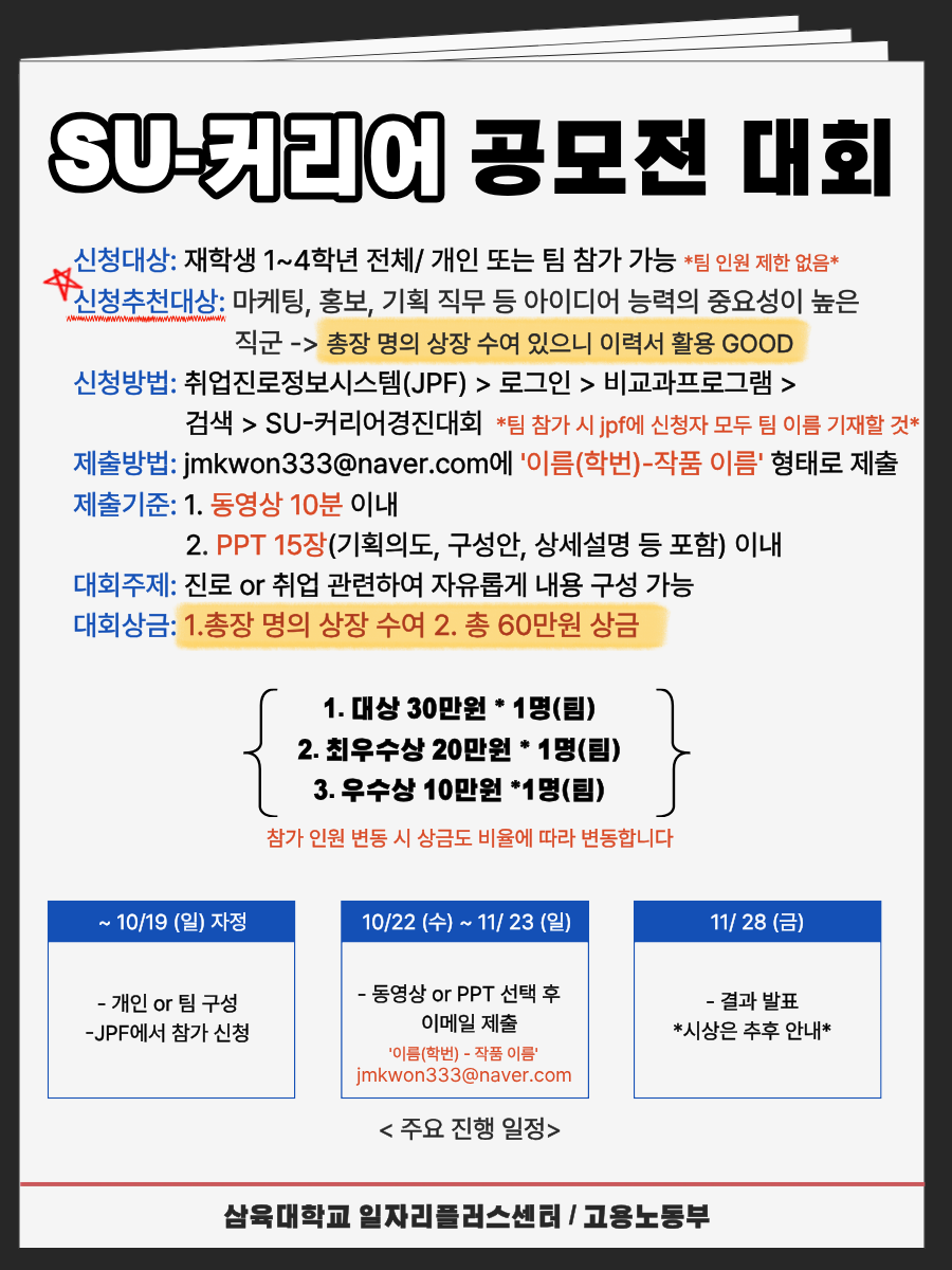 2025년 SU-커리어 공모전이 아래와 같이 열립니다.