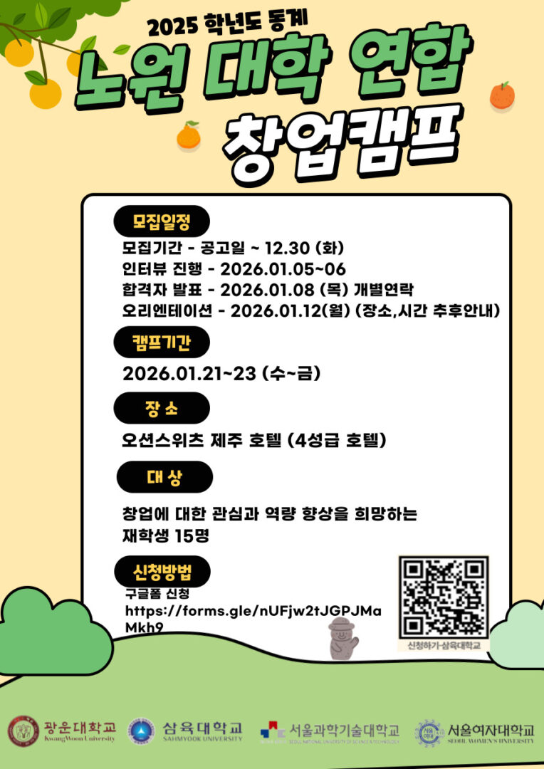 2025학년도 동계 노원 대학 연합 창업캠프 모집 공고