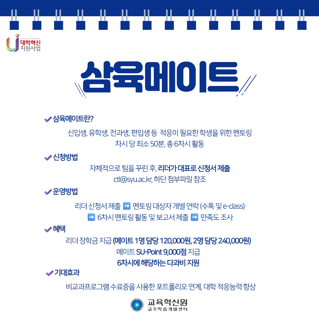 (혁신) 2025-1 삼육메이트 (재학생 멘토링 프로그램) 신청 안내