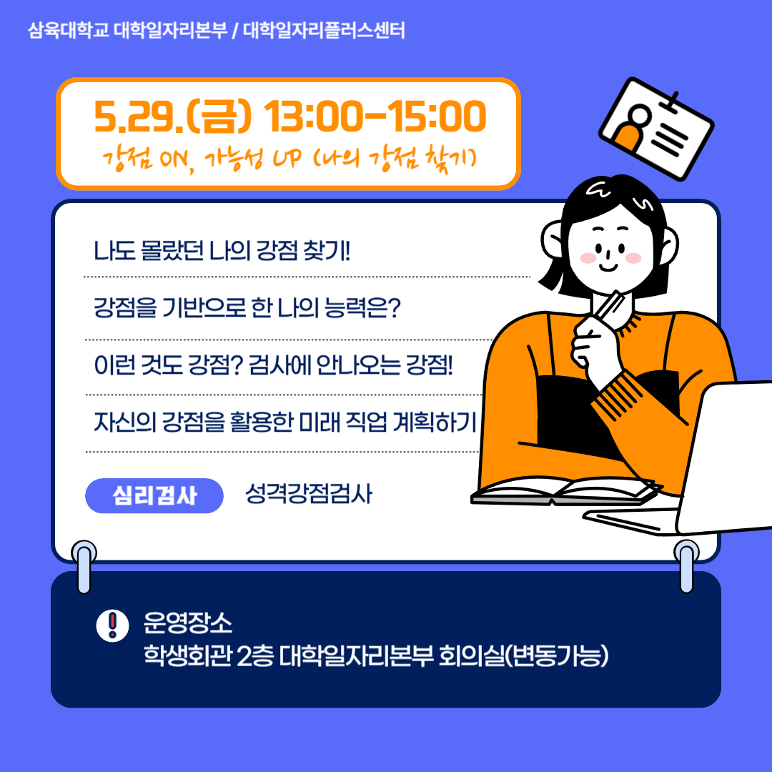 - 5/29(금) 13:00-15:00 강점 ON, 가능성 UP (나의 강점 찾기)